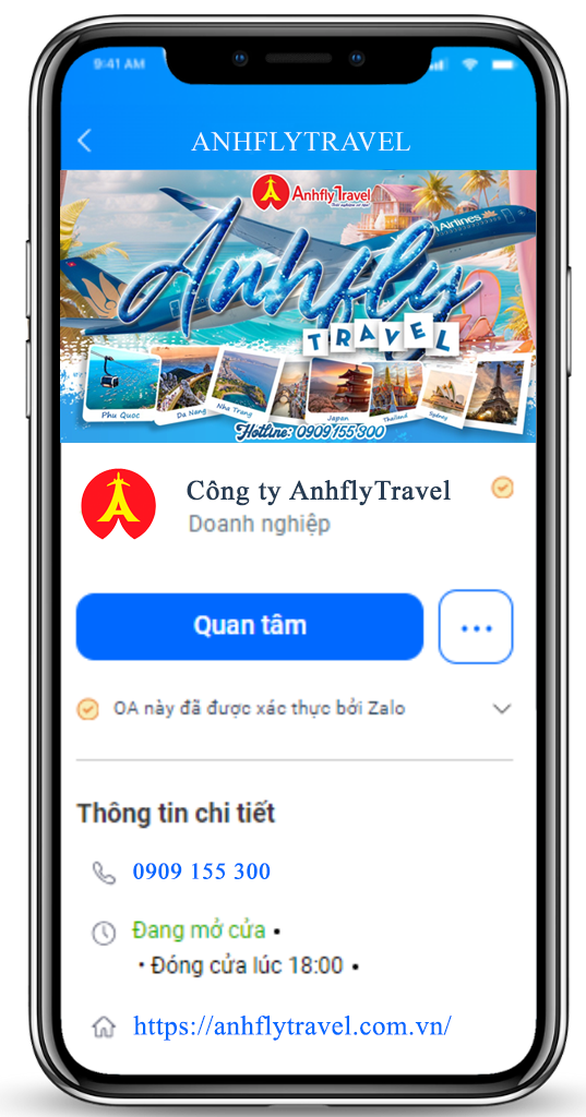 Chúng tôi du lịch tới đảo Phú Quốc xinh đẹp. Được đồng hành cùng công ty du lịch Anhfly Travel. Chúng tôi thấy được quan tâm chăm sóc tận tình từng bữa ăn giấc ngủ khi đi du lịch. Hướng dẫn viên của công ty Anhfly Travel chu đáo, tận tình. Trước ngày đi chúng tôi còn được công ty thông báo đến từng người giờ khởi hành và những thứ cần chuẩn bị. Công ty Anhfly Travel sẽ là lựa chọn tin tưởng nhất cho những chuyến du lịch lần sau.